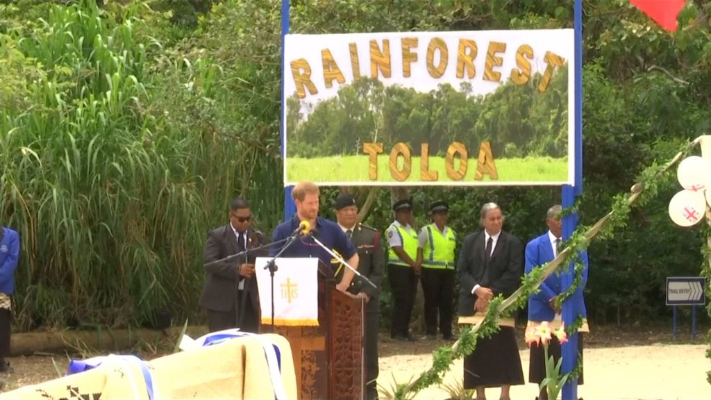 The royal couple enjoyed performances by the Tupou College Boys Choir — particularly an anti-mosquito song. The tiny island nation of Tonga was struck by an outbreak of the Zika virus in 2016. The performances were part of a ceremony which marked the entry of the Toloa Forest Reserve and the Eua National Park Forest Reserve into the Queen’s Commonwealth Canopy, a network of indigenous forest conservation initiatives.